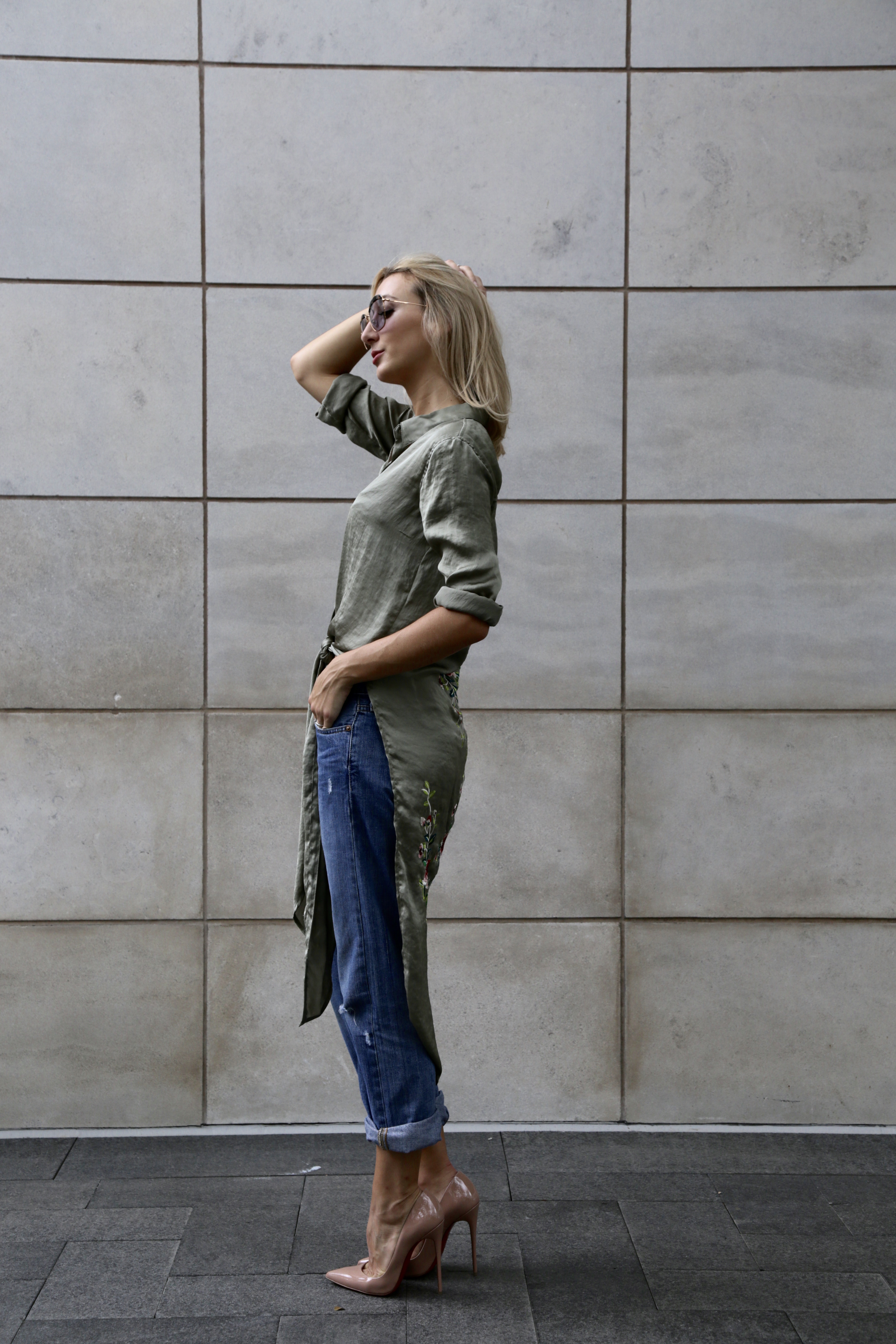 The slit and little ruffle details make this pencil skirt fun and flirty!It was such a good investment piece for me because of it’s fine material and classic shape will last a lifetime. Sadly however it was past season, but I have some similar pieces picked out for you in the widget below!
