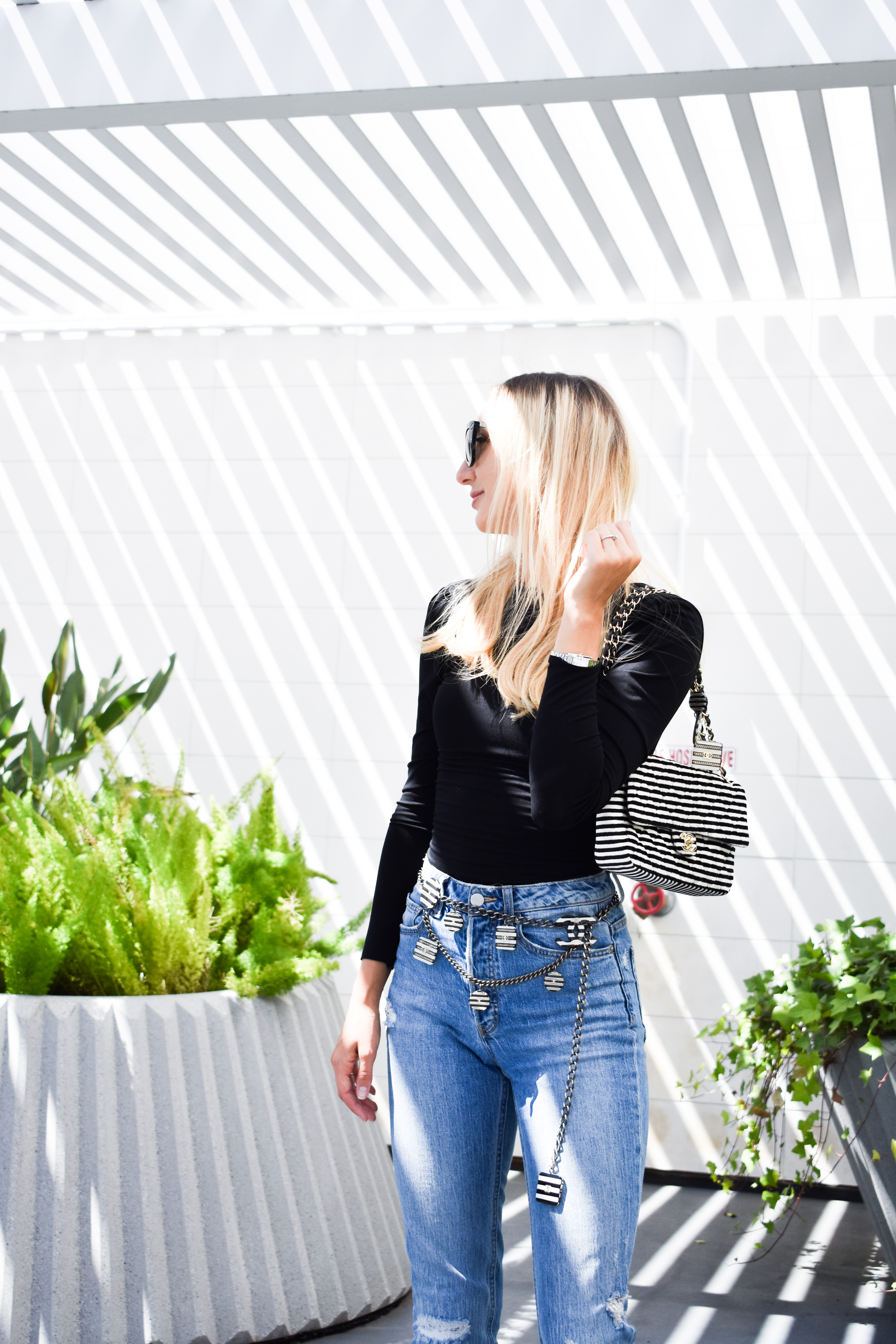 The best way to rock a crop top this season is with high-waisted pants and a fabulous coat. I’m pairing this amazing Elizabeth and James pink crop top with my high waisted jeans from Fitcode and my white Calvin Klein coat.