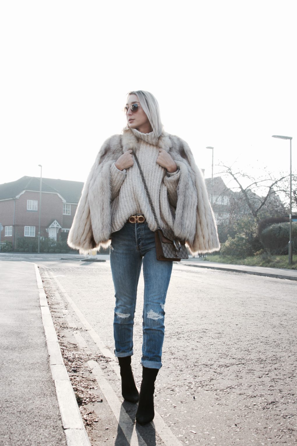 I’m really digging this 90s revival right now for a music setting, to channel that I’m wearing a scuba black dress that looks awesome on and goes well with the other patterns I brought in with my two layers. The plaid shirt from Lucky Brand is my favorite flannel of all time! It’s thin and super soft as opposed to the heavy, bulky ones out there. It looks great on and tied around the waist too. I scored this vintage [it’s more 80s than 90s shhhhh] southwestern print jacket and it’s kinda perfect for the artsy music scene. Suede with a cool fringe that spans across the back of the jacket and down the sleeves give it a great music festival vibe and it will keep me warm if the weather is still cold. The black open toed booties are more for going out at night, not spending a whole day walking around in them! For a comfy day look I would wear flat, ankle boots. Finally, the tattoo chocker in white and black are the finishing touches on this 90s inspired look.